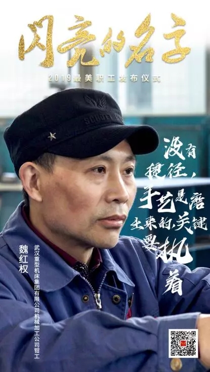 在2019年全國“最美職工”發(fā)布儀式現(xiàn)場,中國兵器工業(yè)集團(tuán)武漢重型機(jī)床集團(tuán)有限公司機(jī)械加工公司鉗工魏紅權(quán),與來自全國各地的另外8名獲獎?wù)吆?個集體,共同接受了中宣部、中華全國總工會授予的這一殊榮。