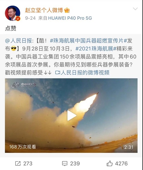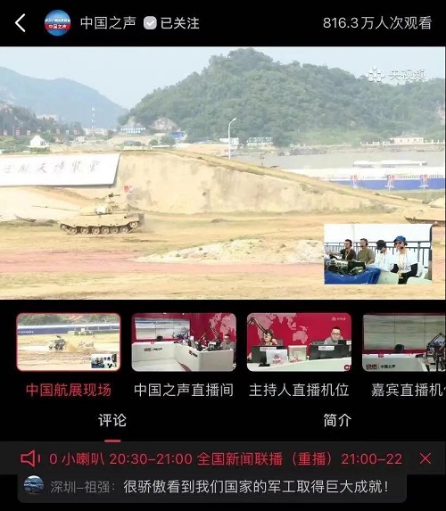 9月28日-10月3日,第十三屆中國國際航空航天博覽會在廣東珠海舉行,中國兵器工業(yè)集團有限公司作為主辦單位閃耀亮相,推出裝甲突擊、火力打擊、智能彈藥、防空反導、無人裝備、非傳統(tǒng)安全、軍工軍技合作等領域新產品及成體系成建制武器系統(tǒng)和解決方案,全方位展示我國陸軍外貿武器裝備的最高水平以及雄厚的科技創(chuàng)新、自主研發(fā)與先進制造能力,受到廣泛關注。 央視《新聞聯播》報道第十三屆中國航展,著重介紹了VT4主戰(zhàn)坦克,關注航展公眾日中國兵器館情況。9月28日下午央視《新聞直播間》航展特別節(jié)目《藍天盛會》邀請集團公司訪談嘉賓做客直播間對中國兵器館兵器工業(yè)集團展區(qū)等進行1小時直播;9月28日下午、10月2日下午分別對地面裝備動態(tài)表演進行兩場直播。央視《朝聞天下》、《新聞直播間》、《共同關注》、《天下財經》、《軍事報道》、《正午國防軍事》、《軍武零距離》等相繼推出集團公司參展裝備的報道。 人民日報、新華社、中國日報、共青團中央、國資小新、騰訊軍事、鳳凰軍事、新浪軍事等新媒體發(fā)布的集團公司航展宣傳片等視頻作品燃爆全網,閱讀量突破三千萬人次,得到外交部發(fā)言人趙立堅轉載點贊。集團公司微信、微博、抖音號、微信視頻號等新媒體宣傳片播放閱讀量超過400萬人次。同時,央視新聞、新華社、中國之聲、央視軍事、央視新媒體、解放軍報、共青團中央、國資小新、環(huán)球時報等多家媒體對集團公司靜、動態(tài)展區(qū)進行現場直播,在電視端、客戶端、微信視頻號、微博、B站、快手、抖音等平臺受到高度關注。著名軍事專家杜文龍、央視主持人顧國寧、央廣中國之聲主持人王藝等直播兵器館、動態(tài)表演區(qū)裝備。 《參考消息》、新華網、央廣網、中國日報、科技日報、解放軍報、人民網、中國新聞網、中國青年網、中國網、中工網、央視網、環(huán)球網、騰訊網、新浪網、鳳凰網、搜狐網、網易網、今日頭條等中央主流媒體和知名網絡媒體以及南方日報、廣東電視臺、北京電視臺、新京報、珠海傳媒集團、深圳衛(wèi)視等省市媒體對集團公司參展情況進行了圖片、文字、視頻報道。 航展期間,備受關注的中國兵器館,參觀的觀眾絡繹不絕。 |