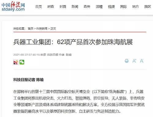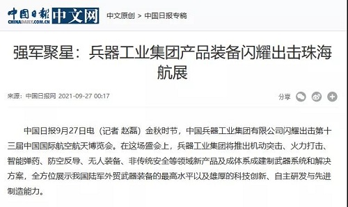 兵器工業(yè)集團參展第十三屆中國航展受到社會廣泛關注 |