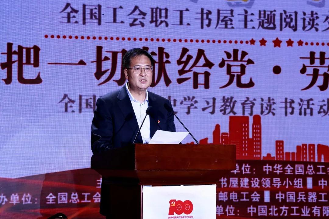 4月23日是第26個(gè)世界讀書日。在中華全國總工會(huì)指導(dǎo)下,全國工會(huì)職工書屋建設(shè)領(lǐng)導(dǎo)小組和中國兵器工業(yè)集團(tuán)有限公司共同舉辦了第五屆“閱讀經(jīng)典好書 爭(zhēng)當(dāng)時(shí)代工匠”全國工會(huì)職工書屋主題閱讀交流活動(dòng)暨“把一切獻(xiàn)給黨·勞動(dòng)創(chuàng)造幸?!比珖毠h史學(xué)習(xí)教育讀書活動(dòng)啟動(dòng)儀式。中華全國總工會(huì)黨組書記、副主席、書記處第一書記陳剛出席活動(dòng)并講話,中國兵器工業(yè)集團(tuán)有限公司黨組書記、董事長(zhǎng)焦開河致辭。陳剛向焦開河傳授活動(dòng)火炬。全國總工會(huì)黨組成員、經(jīng)費(fèi)審查委員會(huì)主任、全國工會(huì)職工書屋建設(shè)領(lǐng)導(dǎo)小組組長(zhǎng)李曉鐘,全國總工會(huì)兼職副主席高鳳林,中國兵器工業(yè)集團(tuán)有限公司黨組副書記周艦出席活動(dòng)。