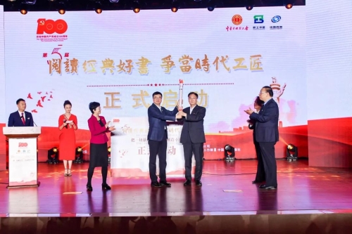 第五屆“閱讀經(jīng)典好書 爭(zhēng)當(dāng)時(shí)代工匠”全國工會(huì)職工書屋主題閱讀交流活動(dòng)正式啟動(dòng),現(xiàn)場(chǎng)進(jìn)行火炬?zhèn)魇?/p>