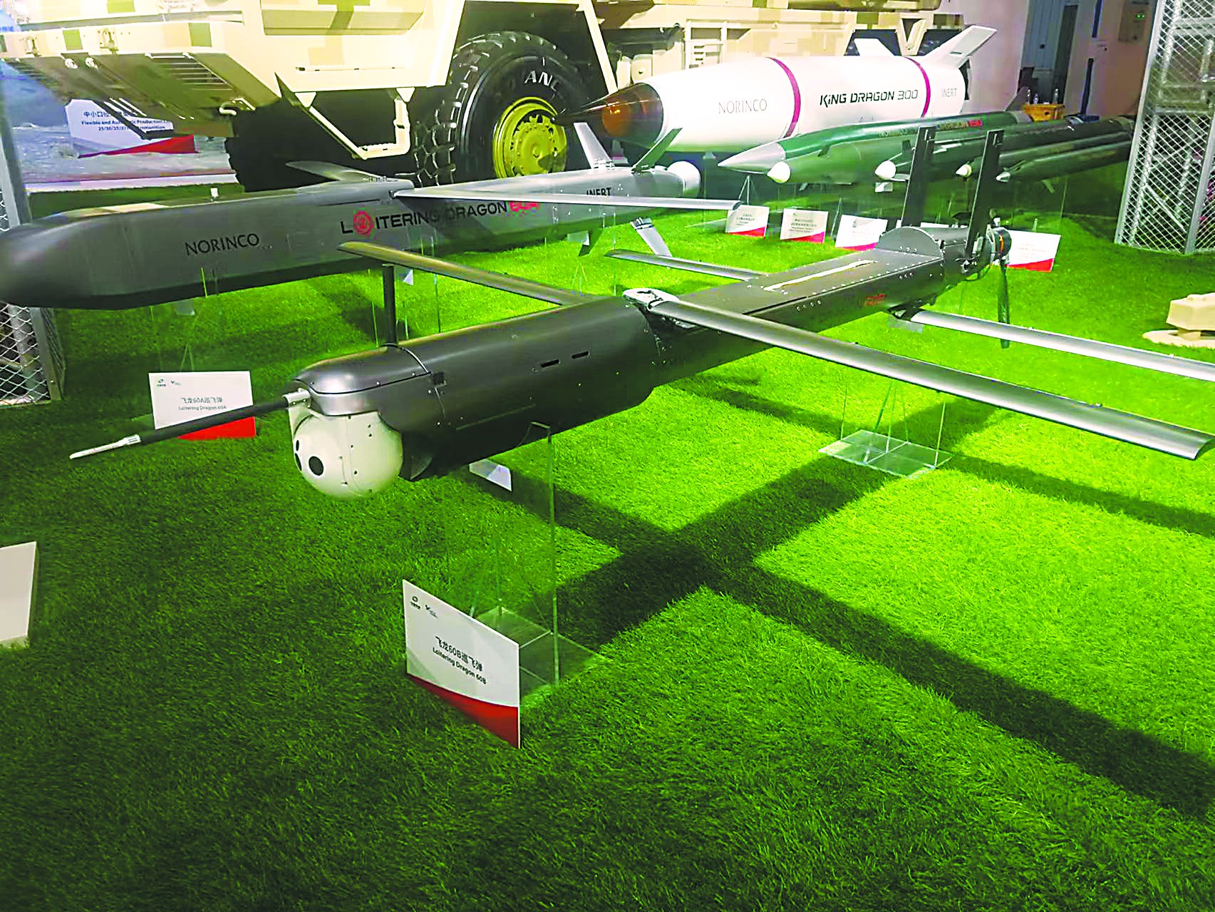 兵器工業(yè)集團(tuán)展出的SR-5遠(yuǎn)程火箭炮系統(tǒng)被稱為“中國版‘海馬斯’”,它的特點(diǎn)之一就是能共架發(fā)射“飛龍-60”巡飛彈,從而引導(dǎo)火箭炮對數(shù)百公里外目標(biāo)的遠(yuǎn)程精確打擊。