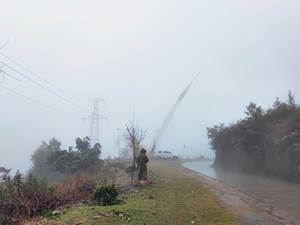 人工增雨彈正在發(fā)射并成功降雨