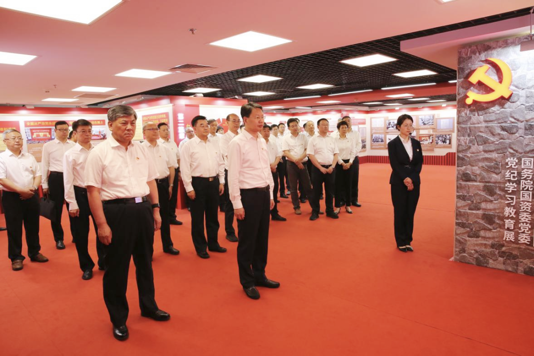 黨組同志認真聆聽講解,集體參觀了“政治鑄魂——習(xí)近平總書記重要論述”“紀法樹威——黨規(guī)黨紀相關(guān)要求”“傳承增信——黨的優(yōu)良傳統(tǒng)”“嚴管促行——國務(wù)院國資委黨委紀律建設(shè)成效”“警示立戒——反面典型案例”“實干建功——工作展望”6個篇章,通過觀看圖文、視頻等形式多樣的展品展示,進一步學(xué)習(xí)領(lǐng)會習(xí)近平總書記關(guān)于國資央企的重要指示批示精神和黨的紀律建設(shè)的重要論述,學(xué)習(xí)把握《中國共產(chǎn)黨紀律處分條例》新增、修訂內(nèi)容,全面了解國務(wù)院國資委黨委強化政治引領(lǐng)、加強政治監(jiān)督、深化紀律建設(shè)、抓實巡視工作等方面的做法舉措,集中觀看近年來國資央企發(fā)生的具有代表性的違規(guī)違紀案例,深刻領(lǐng)悟以習(xí)近平同志為核心的黨中央堅持黨要管黨、全面從嚴治黨取得的歷史性成就,全面感受國務(wù)院國資委黨委全面從嚴治黨取得的重要成果。